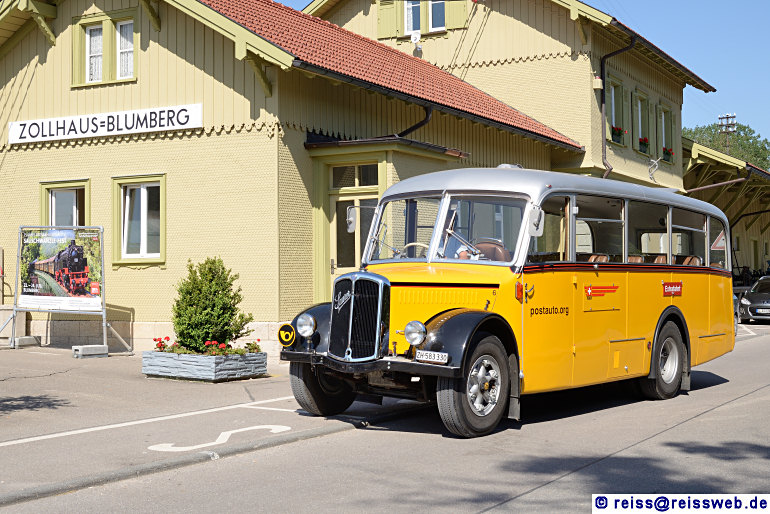 Immer wieder kommen auch Oldtimerbusse zur Sauschwaenzlebahn. Dieses ehemalige Schweizer
