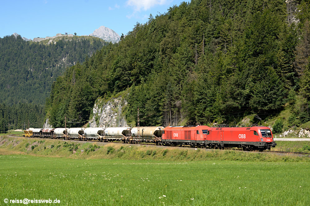 1016 012 & 2016 044 bringen gemeinsam den Güterzug DGS 45145 von Reutte nach Hall in Tirol (Heiterwang, 08.08.2016).