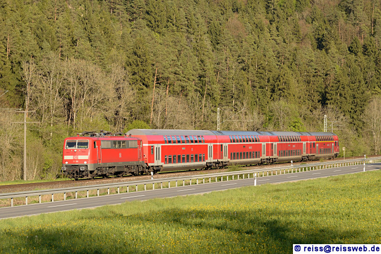 111 183 ist mit RE 19042 von Singen nach Stuttgart unterwegs (Epfendorf, 10.05.2017).