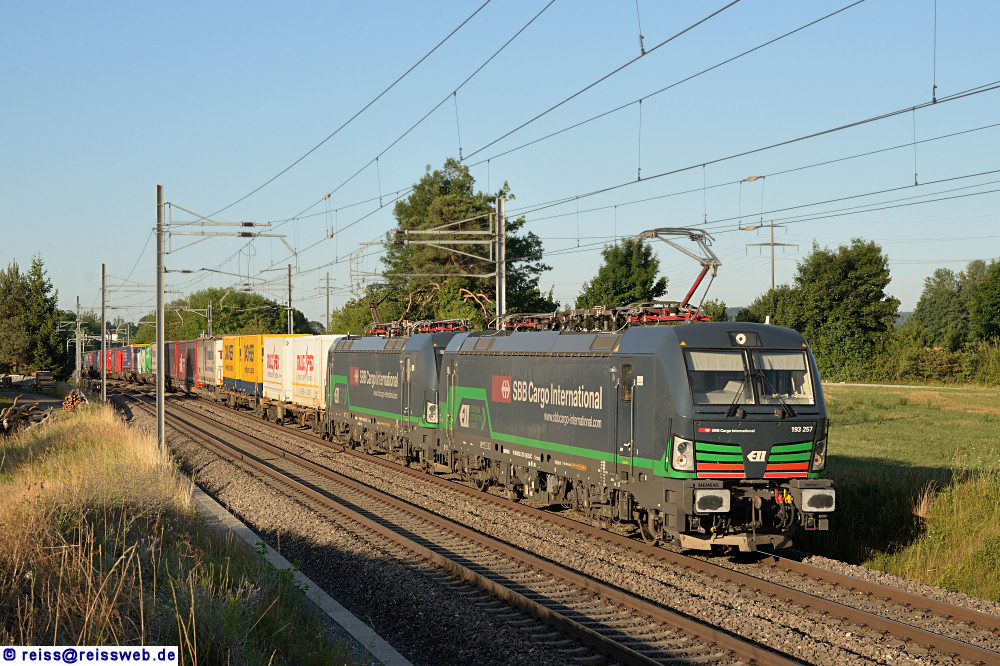 193 257 & 256 von SBB Cargo International bringen den KLV-Zug 42092 nach Schaffhausen - meine Vectron-Premiere vor der Haustüre! (Jestetten, 05.07.2017).
