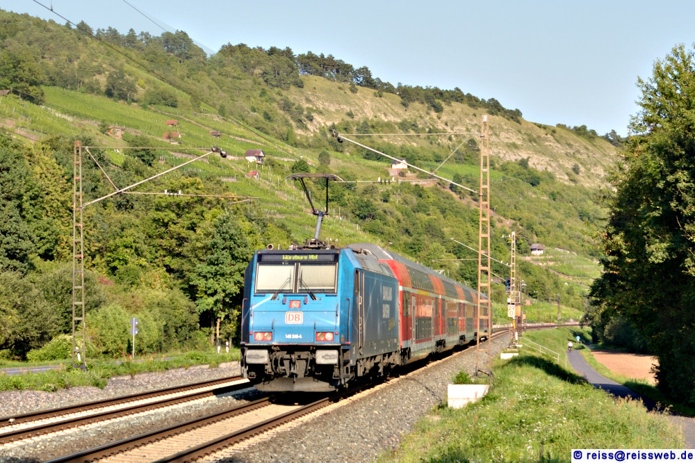 DB Regio 146 246 "Bahnland Bayern" schiebt RE 45 von Frankfurt nach Würzburg (Gambach, 07.08.2017).