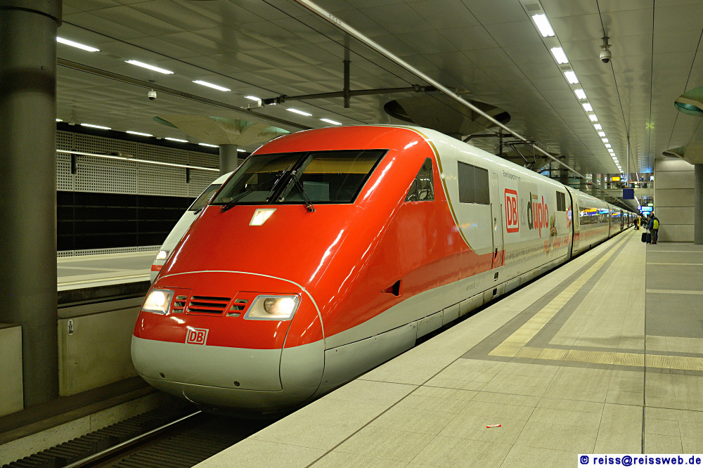 401 012 "Duplo" erreicht am 11.02.2018 als ICE 598 von München kommend Berlin Hbf (tief).