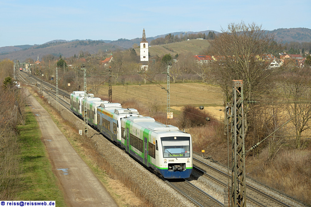 Vier Regioshuttle der Breisgau-S-Bahn kehren aus dem Elztal nach Freiburg zurück (Denzlingen, 05.03.2018)