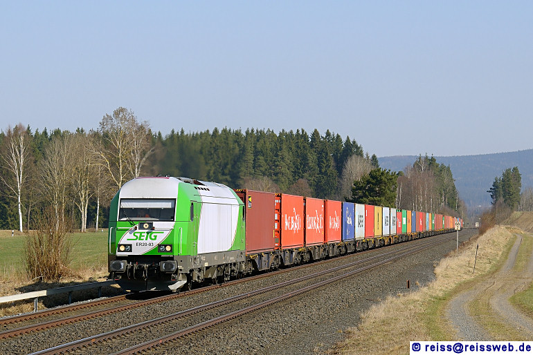 SETG ER 20-03 bringt einen Containerzug nach Wiesau (Neudes [Marktleuthen]), 10.04.2018).