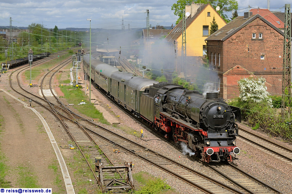 Anlässlich des Dampfspektakels 2018 brachte 01 1075 einen Dampfsonderzug von Trier nach Saarbrücken (Bous, 28.04.2018).