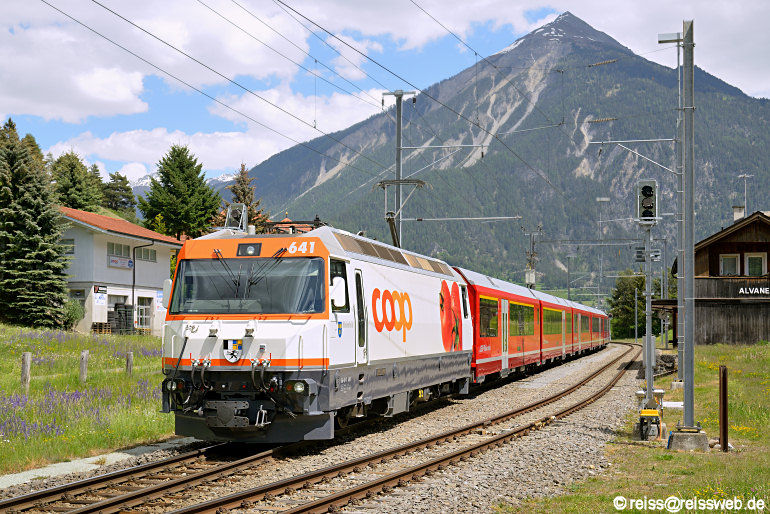 RhB Ge 4/4 III 641 "COOP" bringt IR 1144 von St. Moritz nach Chur (Alvaneu,25,05,2018).