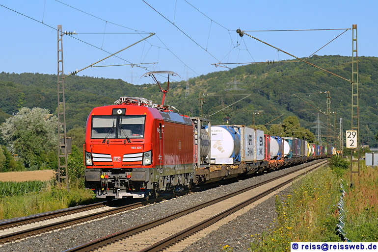 DB Cargo 193 325 bringt einen KV-Zug durch das Maintal nach Süden (Gambach, 03.07.2018)