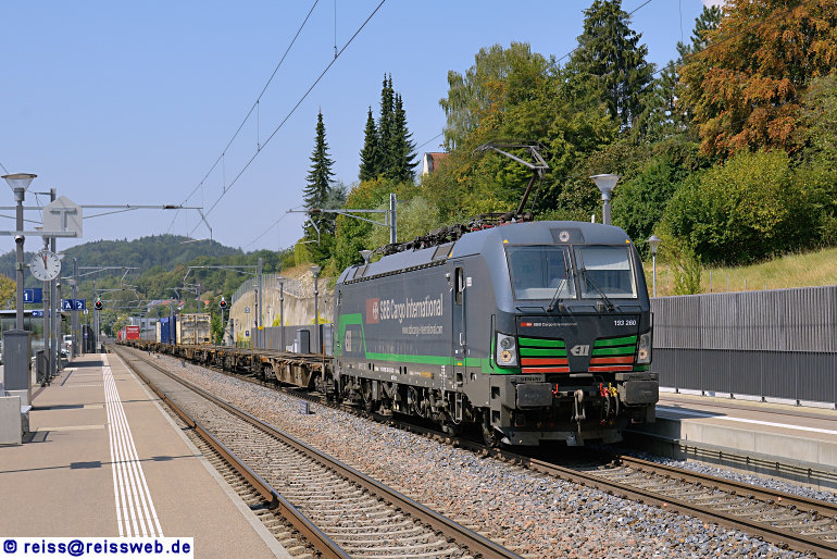 ELL 193 260 (vermietet an SBB Cargo) bringt den stark verspäteten UKV-Zug 41038 nach Singen (Jestetten, 04.08.2018).