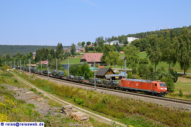 über dem Nordportal des Grundwald-Tunnels nach Sommerau wechseln, 185 015 hat den Scheitelpunkt der Schwarzwaldbahn überwunden (05.08.2018).