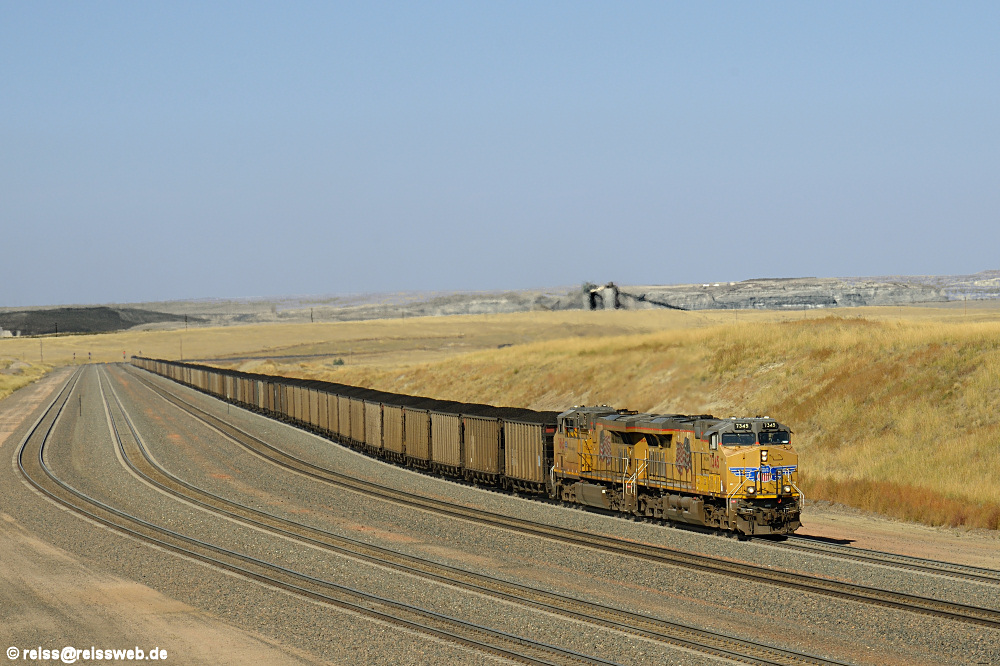 UP ES44AC 7345 & 7865 bringen einen Kohlezug aus dem