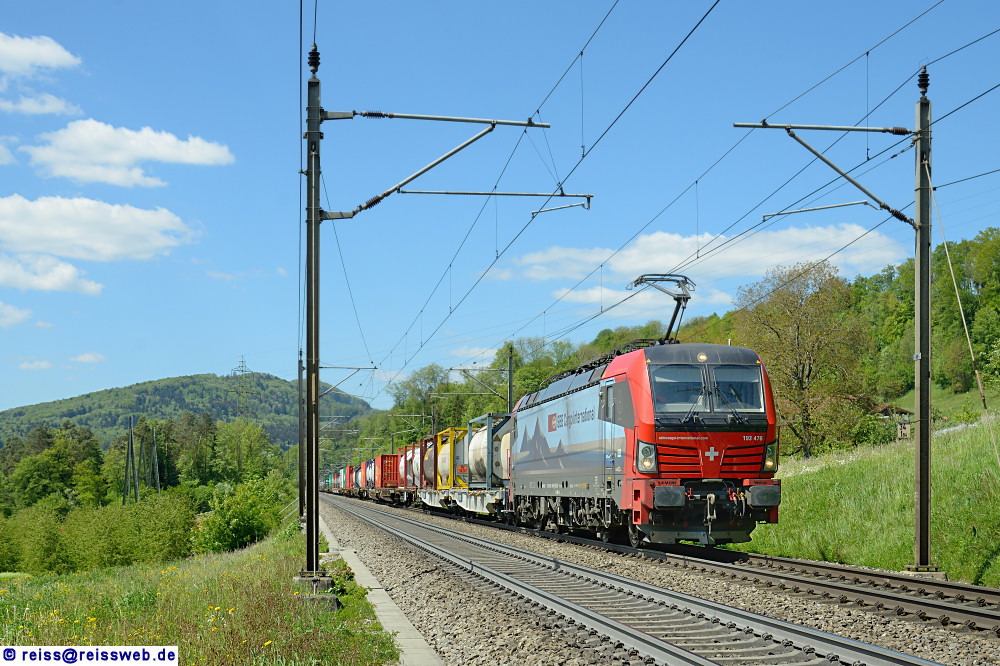 193 476 von SBB Cargo International bringt einen UKV-Zug über den Bötzberg nach Süden (Umiken, 14.05.2019).