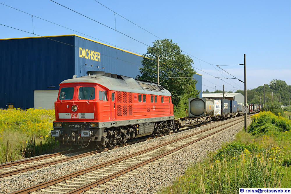 232 262 erreicht mit dem umgeleiteten KV-Zug 50030 aus Ulm in wenigen Minuten sein Ziel Singen (Singen Industriegebiet, 25.08.2019).