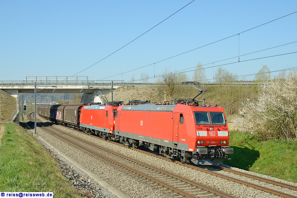 DB Cargo 185 098 & 113 bringen den Umleiter-Zug 41684 vom RB Limmattal nach Singen (Jestetten, 06.04.20220).