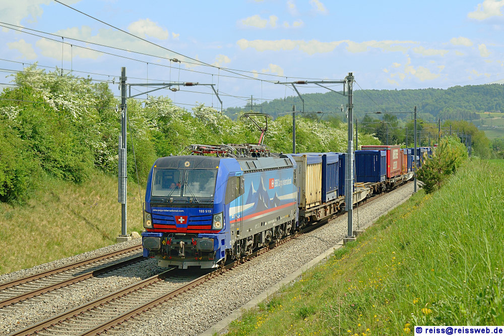 SBB Cargo 193 519 bringt einen UKV-Zug nach Süden (Jestetten, 27.04.2020).