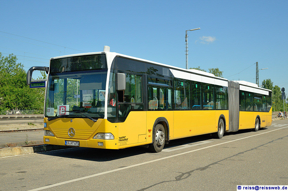 Citaro KA-HT 670 von Hagro Transbus Reisen GmbH in Ettlingen beginnt in Denzlingen die Fahrt nach Elzach (Schienenersatzverkehr [SEV] im Rahmen der Elektrifizierung der Elztalbahn mit Vollsperrung vom 01.03. - 12.12.2020).
