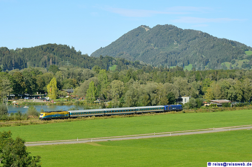 ALEX 223 013 "Bodo" & 001 "Beacon" bringen den ALX 84143 im Sandwich von Oberstdorf nach Kempten (Blaichach, 04.09.2020).