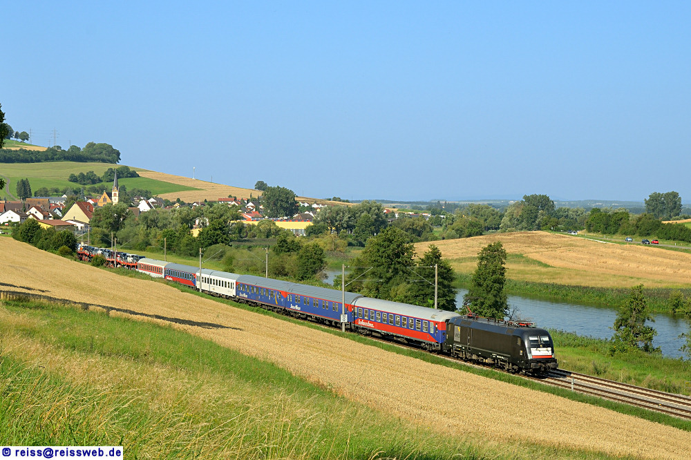 MRCE 182 518 bringt den umgeleiteten Urlaubs-Express Ostseebad Binz - Hamburg - Lörrach nach Singen (Gutmadingen, 14.08.2021).