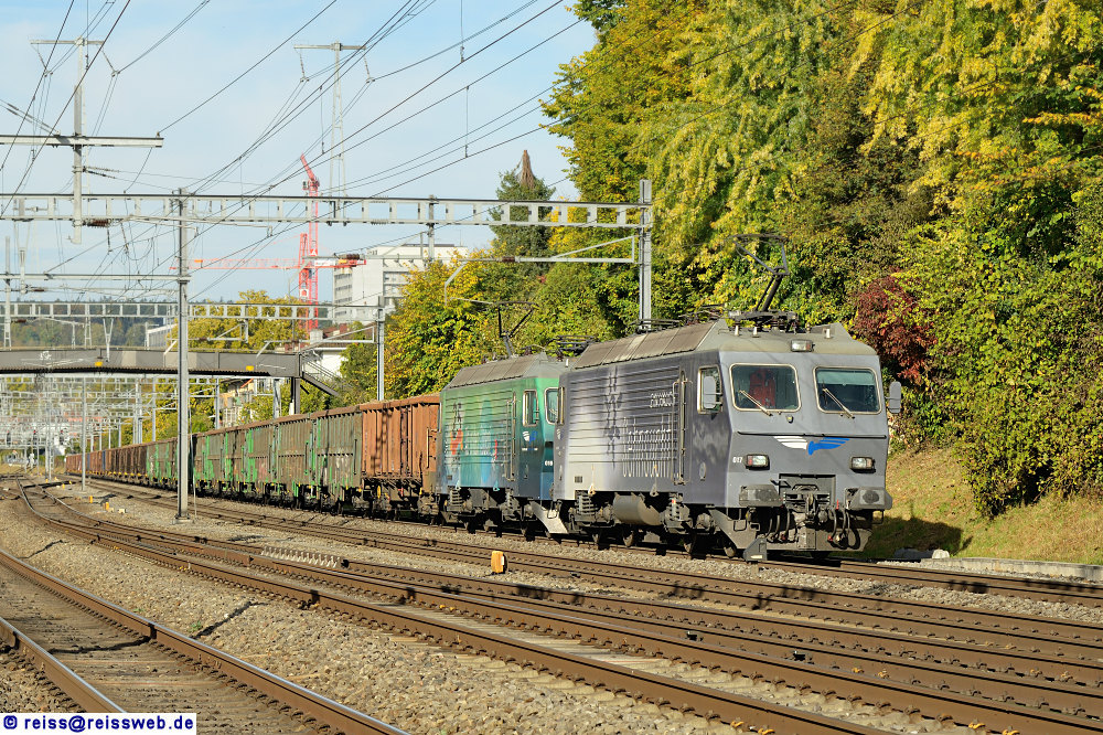 EDG 446 017, 016 und am Zugende 015 bringen einen Rübenzug von Basel nach Frauenfeld (Winterthur-Schwalmenacker, 20.10.2021)