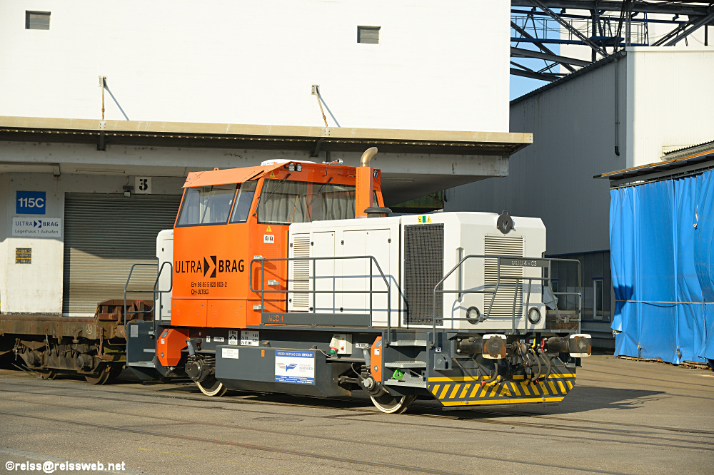 Em 98 85 6 820 003-2 ist seit Anfang 2017 für Ultra-Brag im Muttenzer Auhafen im Einsatz. Gebaut wurde sie in Bulgarien von der Firma