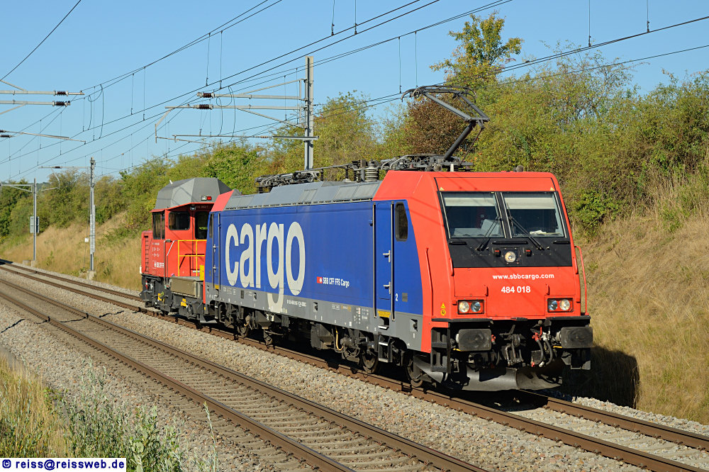 Statt mit der üblichen Last ist die Übergabe 44612 lediglich mit einem Baudiensttrakor Tm 234 vom RBL nach Schaffhausen/Singen unterwegs (Jestetten, 08.08.2022).