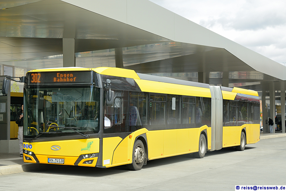 | olaris Urbino 18 IV im Einsatz auf der Linie 302 von Singen nach Engen. Die Stadtbus Tuttlingen Klink GmbH betreibt (zusammen mit Subunternehmern) den Stadt- u. Regionalverkehr im LK Tuttlingen sowie den Regionalverkehr im LK Konstanz (Singen, 26.04.2023). |