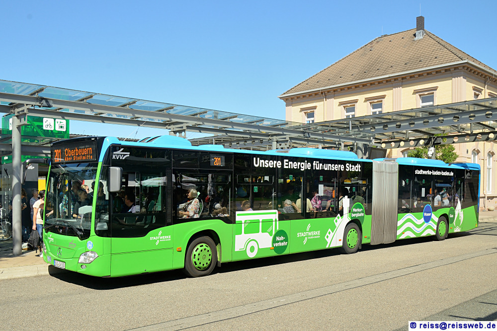 Citaro C2 G Nr. 530 der Baden-Baden-Linie (BBL) wartet am Bahnhof Baden-Baden auf die Abfahrt nach Oberbeuern (02.09.2023).