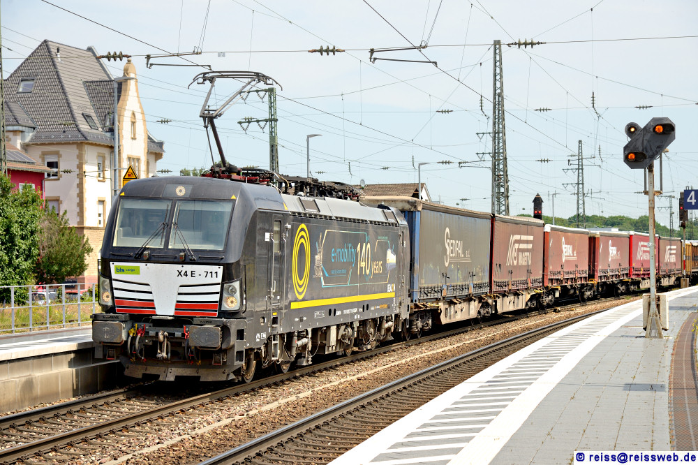 Beacon 193 711 bringt einen KV-Zug durch Rastatt nach Süden (08.06.2024).