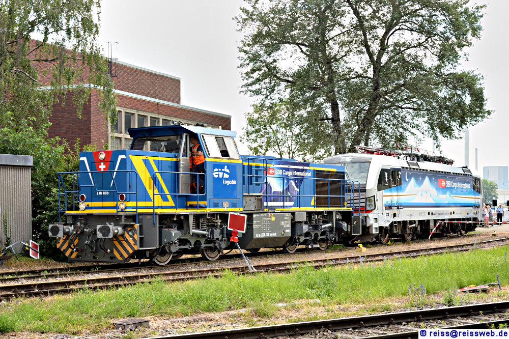 | EVB 276 006, angemietet von SBB Cargo International und mit eigenen Folien versehen. Sie ist im Raum Karlsruhe stationiert und in F, CH und D zugelassen. Damit könnte sie während der Sperre südlich von Rastatt (09. - 30. August 2024) Leistungen Wörth - Lauterbourg - Strasbourg - Kehl erbringen (Karlsruhe Rheinhafen, 28.06.2024). |