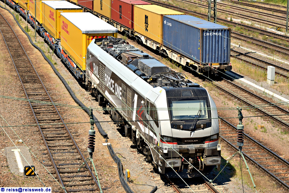 RFO (Rail Force One) 2159 257 steht in Wörth vor einem KV-Zug Richtung Karlsruhe (09.07.2024).