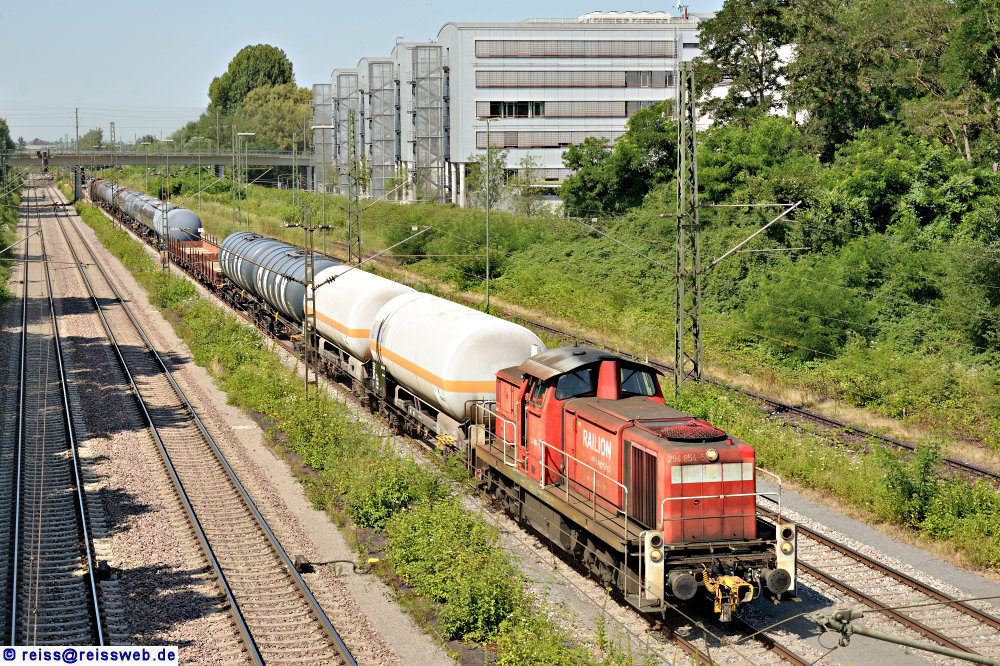 DB Cargo 294 854 fährt mit einem Übergabezug aus Karlsruhe-West in den Karlsruher Rangierbahnhof ein (19.07.2024).