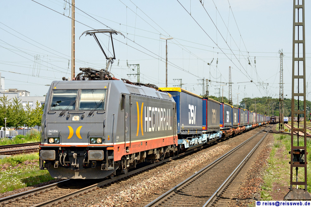 Hectorrail 241 014 "Ackbar" bringt einen KV-Zug durch Rastatt nach Süden (30.07.2024).