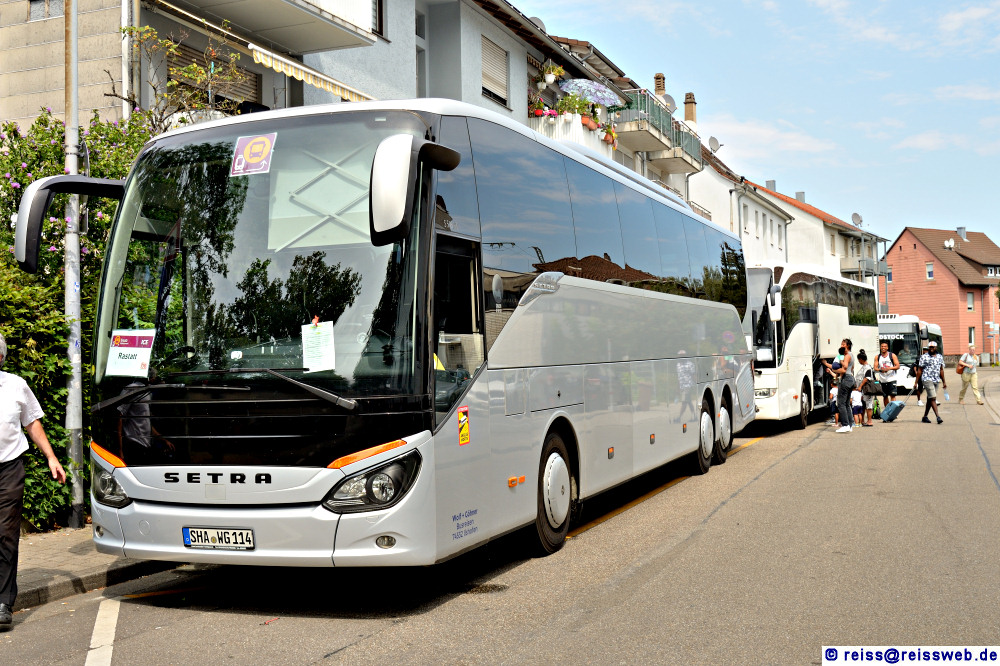 | Im ICE-Ersatzverkehr kamen auch Fernverkehrsbusse zum Einsatz - Vorteil war der separate Gepäckraum, nachteilig war, daß ein Niederflureinstieg nicht angeboten werden konnte. Ausnahme waren einige Nahverkehrsbusse, die beim ICE-Ersatz ebenfalls eingesetzt wurden (Rastatt, 13.08.2024). |