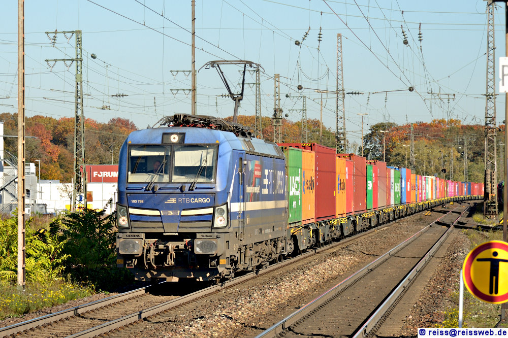 RTB 193 792 bringt einen Containerzug durch Rastatt nach Süden (25.10.2024).