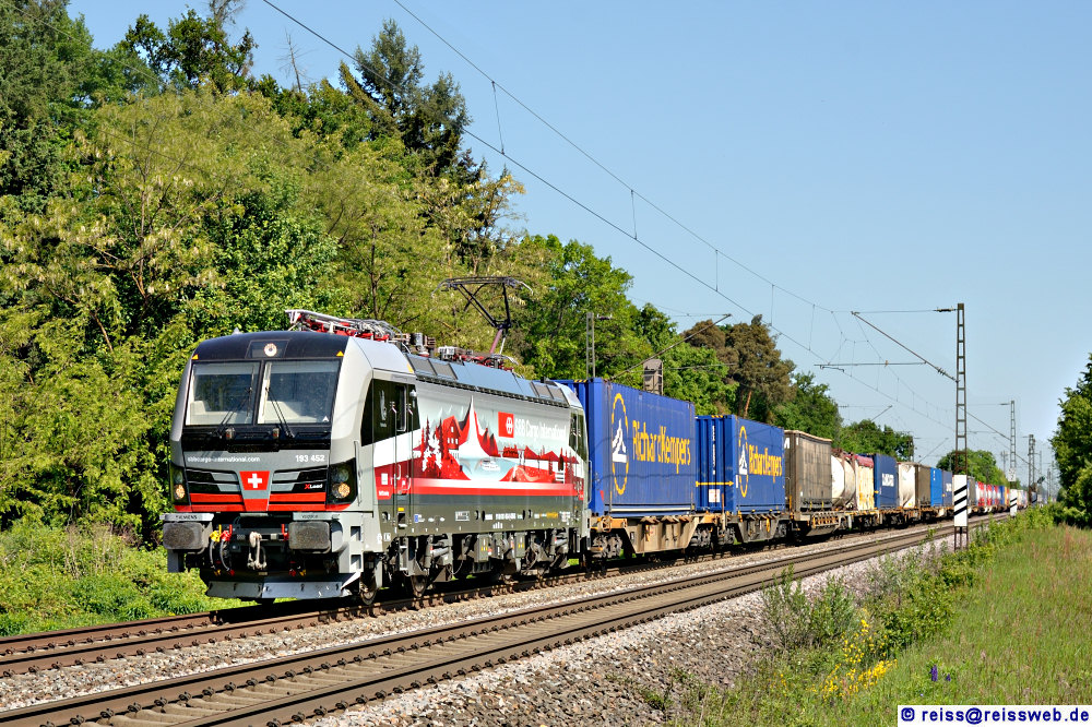 SBBC 193 452 "Bundeshaus Bern" bringt einen KV-Zug durch Blankenloch Richtung Süden (09.05.2025).