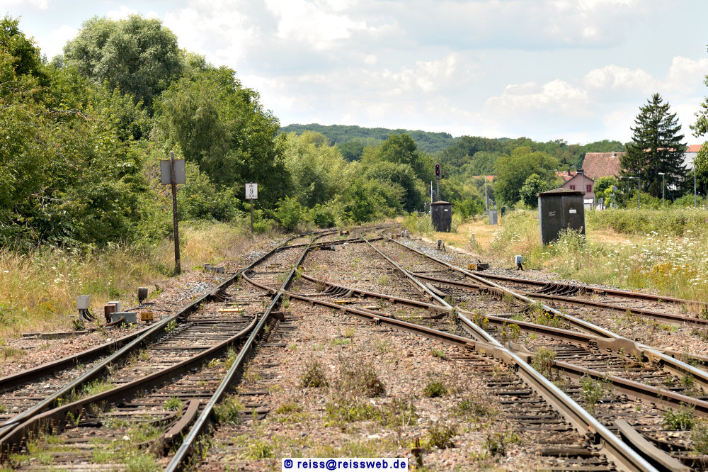 | Die westliche Ausfahrt aus Obermodern geht in eine Kurve Richtung Ingwiller - Saareguemines über, zu vermuten ist, daß die ehemalige Weiterführung nach Steinbourg - Saverne (Zabern) geradeaus weitergeführt wurde. Bei meinem ersten Besuch 2011 war nichts mehr zu erkennen (Obermodern, 12.07.2025). |