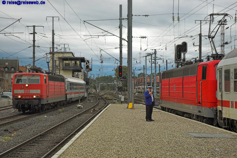 181-er Treffen in Strasbourg - während für 181 209 (rechts im Bild) die Ausfahrt Richtung Kehl bereits gestellt ist, trifft 181 208 mit EC 264 in Strasbourg ein (03.09.2006).