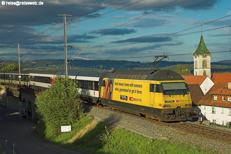 Das Wetter spielte mit, als 460 042 "Western Union II" am Abend des 04.09.2006 ihren Zug durch Lottstetten schob.