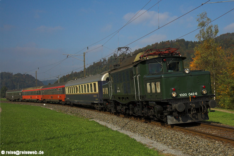 1020.042 war ebenfalls im Rahmen des "Triebwagentreffs 2006" in Bauma im Einsatz - beim Umlauf nach Winterthur u. zurück nach Bauma wurde sie zwischen Saland und Dillhaus aufgenommen (15.10.2006).