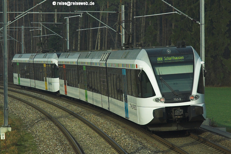 Doppelspurinsel zwischen Henggart u. Hettlingen - es wird planmässig rechts gefahren. GTW 2/8 526 753 ist am 16.12.2006 zusammen mit einem GTW 2/6 auf dem Weg nach Schaffhausen.