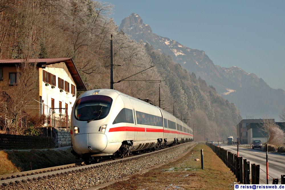 ICE-T 1116 wurde Ende 2006 (zusammen mit zwei weiteren Triebzügen) von den ÖBB übernommen und intern als Reihe 4011 geführt. Am 25.12.2006 war von Wien nach Bregenz unterwegs, aufgenommen kurz vor Bludenz.