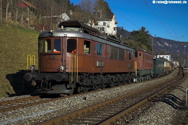 Wenige km vor La Chaux-De-Fonds wurde der Classic Rail Lokzug im Bhf Renan (BE) auf das Ausweichgleis geleitet, 2 Gegenzüge mussten abgewartet werden (13.01.2007).