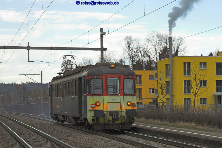 Selten sind die noch vorhandenen Prototyp-Fahrzeuge der Reihe RBe 4/4 unterwegs, am 07.03.2007 fuhr RBe 4/4 1405 von Basel nach St. Gallen, um dort für einige Zeit als Heizlok eingesetzt zu werden - aufgenommen wurde er in Räterschen.