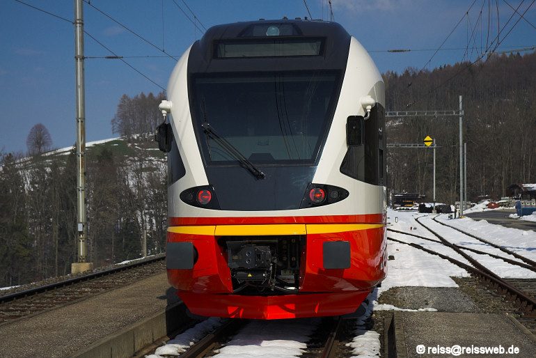 Ansicht der Frontseite des RABe 527 331 (Schachen, 27.03.2007).
