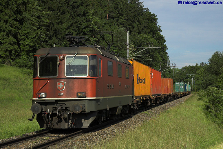 Einen aussergewöhnlichen Laufweg hatte Re 4/4 II 11169 mit ihrem Zug am 20.05.07, Ziel des Zuges war Buchs (SG), gefahren wurde ab Basel über Koblenz - Eglisau - Bülach - Regensdorf - RBL, die Aufnahme entstand bei Eglisau.