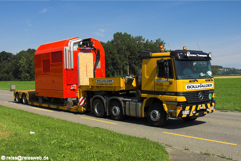 Die in Bussnang gefertigten Antriebsmodule für die ARRIVA-GTW werden per Strassentransport nach Altenrhein gebracht, wo sie mit den Endwagen zur kompletten Einheit zusammengestellt werden (Sulgen, 23.07.2007).