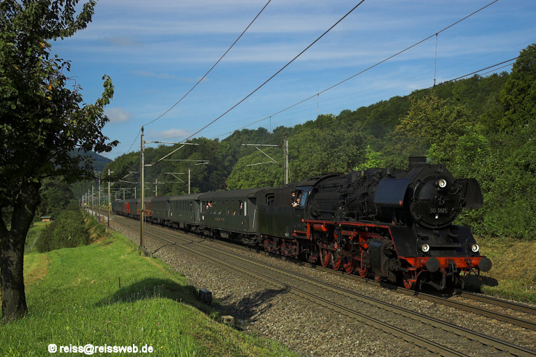 Zur Badenfahrt 2007 wurde von Eurovapor ein Sonderzug von Haltingen nach Baden gefahren, Zuglok war 50 3673, ab Möhlin half Ae 4/7 11026 des Vereins Mikado über den Bözberg hinweg (Umiken, 18.08.2007).