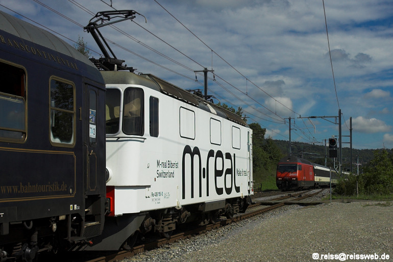 Kreuzungshalt in Altenburg-Rheinau - der IGE-Sonderzug wartet einen entgegenkommenden IR nach Zürich ab (23.08.2007).