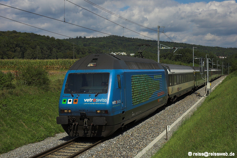 Am 02.09.2007 hat 460 071 "Vetroswiss" mit IR 2575 Schaffhausen - Zürich gerade das Einfahrsignal der Station Altenburg-Rheinau aus Richtung Neuhausen passiert.
