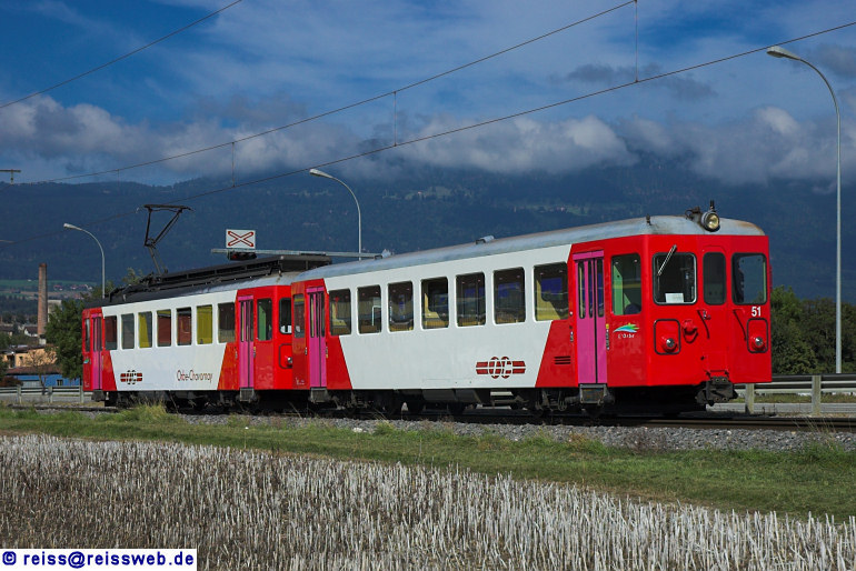 TRAVYS BDe 4/4 Nr. 15 erreicht auf seinem Weg von Chavornay nach Orbe (Gare) den Stadtrand von Orbe und fährt in die Station Les Granges (Orbe) ein. Das Fahrzeug wurde mitsamt Steuerwagen von der SZU übernommen (12.09.2007).