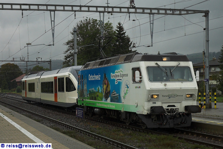 SOB 456 096 bringt am 18.09.2007 einen Veolia-GTW 2/6 von Bussnang nach Romanshorn, die Aufnahme entstand bei der Durchfahrt in Bürglen (TG). Weitere Bilder der für Veolia (NL) bestimmten GTW (2/6 u. 2/8) in